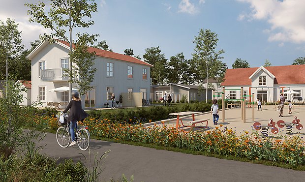 Med nya gång- och cykelvägar knyts området samman med tätorten - på Brännebacka har du nära till både natur, idrott, skola och service!