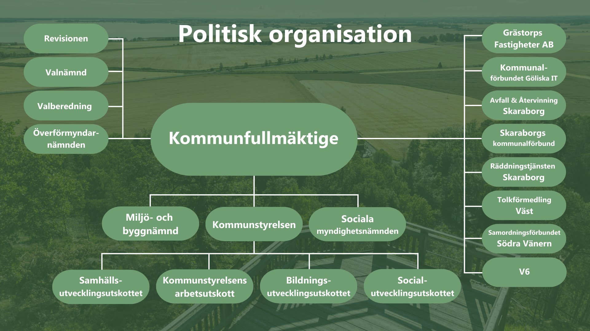Grästorps kommun styrs av folkvalda politiker, och kommunfullmäktige är den högsta beslutande instansen. På de här sidorna hittar du information om kommunens organisation, hur den styrs och om hur du som privatperson kan påverka.