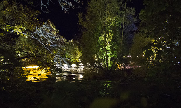 Promenaden är belyst mellan klockan 18-22. Kulturhuset är öppet till 20.00, caféet stänger klockan 19.00.