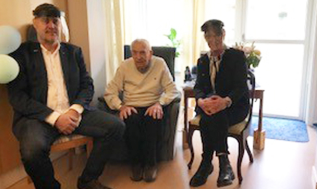 - Vi är mycket glada att vi idag gavs möjligheten att få uppvakta Nils. Vi fick en trevlig stund där vi pratade om allt från flygplan till kungahuset och Covid-19, säger Kent Larsson, kommunstyrelsens ordförande.