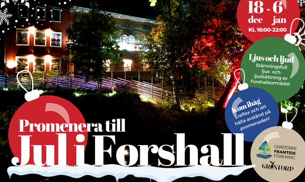Under slutet av december lyser Grästorps Framtidsförening i samarbete med Grästorps kommun upp området kring Forshalls naturpark. Där kan du också lyssna på stämningsfulla ljud.