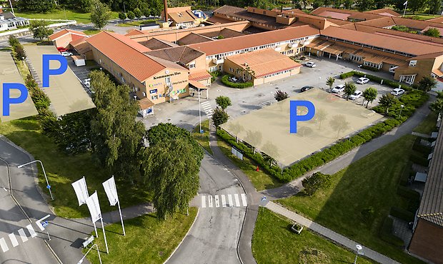 Framför Kommunens hus kan det ibland bli trångt på parkeringen. Se till att parkera i angivna rutor, och var vänliga och respektera de reserverade platserna för hemtjänstens bilar som används alla dagar i veckan.