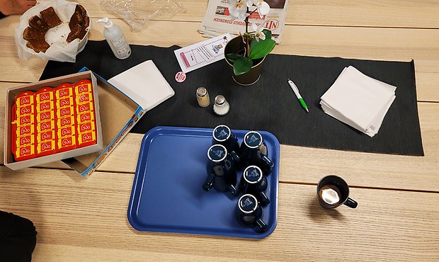Idag är bland andra Deeqa, Frida, Ina och Mona på språkcaféet, tillsammans med Anastasiia som arbetar som integrationssamordnare. Flera andra som arbetar i AME-huset stannar till och pratar lite med cafégästerna.