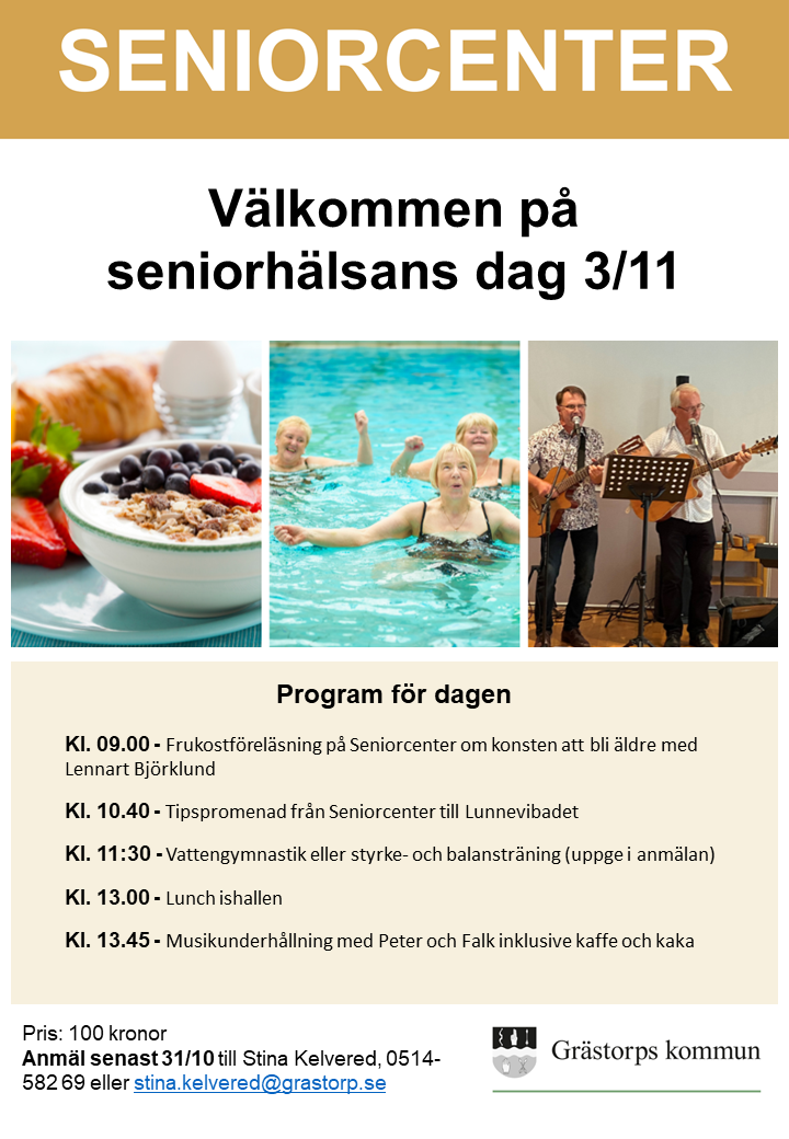 Seniorcenter välkomnar Grästorps seniorer till en dag fylld med aktiviteter på temat hälsa.