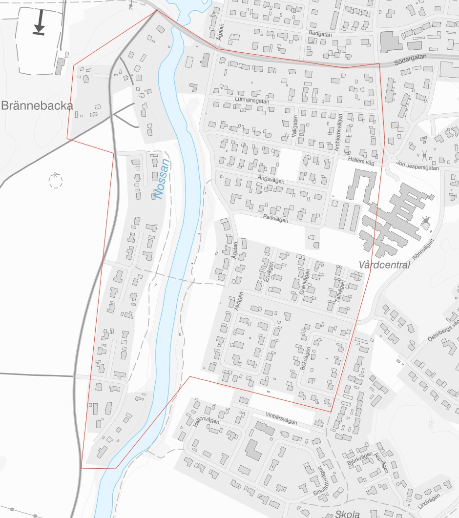 Det påverkade området sträcker sig över Brännebackaområdet fram till Kommunens hus, från Södergatan till Vinbärsvägen.