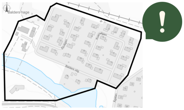 Imorgon (24/5) kl. 14 stängs vattnet av för ventilbyte i området kring Balders väg (se inringat område på kartan), berörda abonnenter har fått information via SMS. Avstängningen kommer att pågå i ett par timmar framåt.
