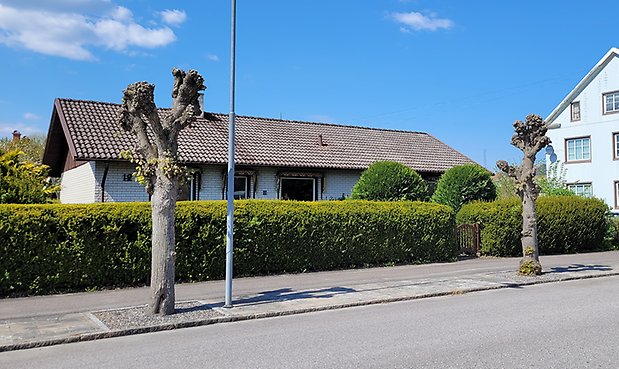 Huset är byggt på 70-talet med originalinteriören kvar. Fint men slitet skick. Huset hyrs ut på rivningskontrakt till en kostnad av 10 000 kr per månad. Hyresgästen ombesörjer trädgårdsskötsel och snöskottning.