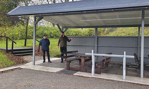 "Från början handlade det bara om ett tak där vi kunde ha våra grejor, men sedan blev det större när vi skissade tillsammans med kommunen", berättar Göran Enström från Grästorps bouleförening - en förening som bildades just för att de skulle kunna ansöka om föreningsstöd från kommunen. Ett par år och ett bygglov senare finns taket på plats, med en tillhörande bod för utrustning och belysning under kvällstid.