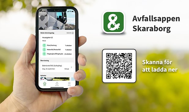 Många användare har tidigare använt appen Mitt avfall Skaraborg för att hålla koll på sophämtningen och få aviseringar. Den appen har slutat att utvecklas och du som användare får inte längre påminnelser när det är dags att ställa ut dina sopkärl. Därför är det viktigt att alla invånare nu laddar ner den nya Avfallsappen Skaraborg.