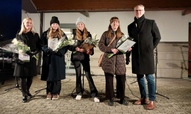 Prestationsmedaljörer tar emot pris av Tobias Leverin, förste vice ordförande i kommunstyrelsen, andre kommunalråd.