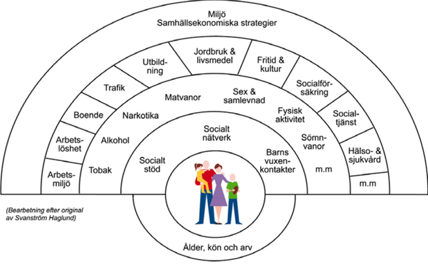 Hälsa är komplext och innefattar såväl fysiska, psykiska samt sociala aspekter. Hälsan påverkas också av ett stort antal faktorer kopplat till livsvillkor, livsmiljöer och levnadsvanor. En del faktorer kan inte påverkas så som genetik och ålder, medan andra bestämningsfaktorer kan påverkas.
